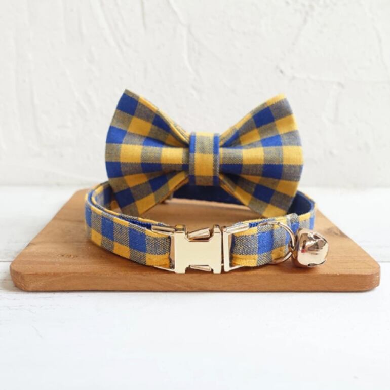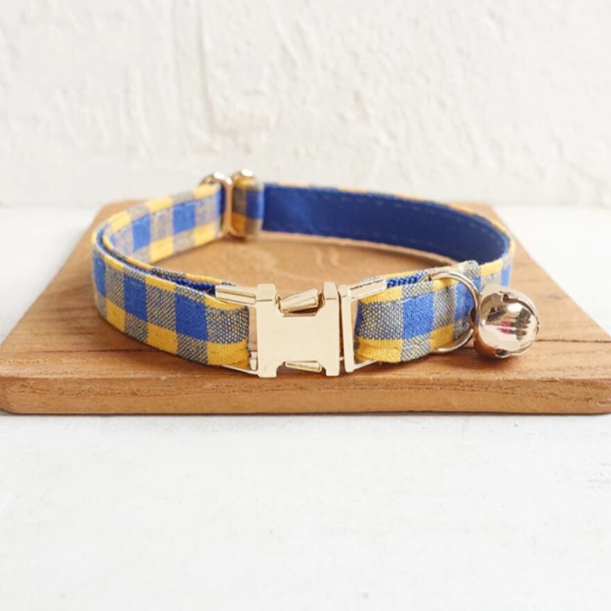 おなまえ猫首輪【イエローブルー×バッファローチェック】
