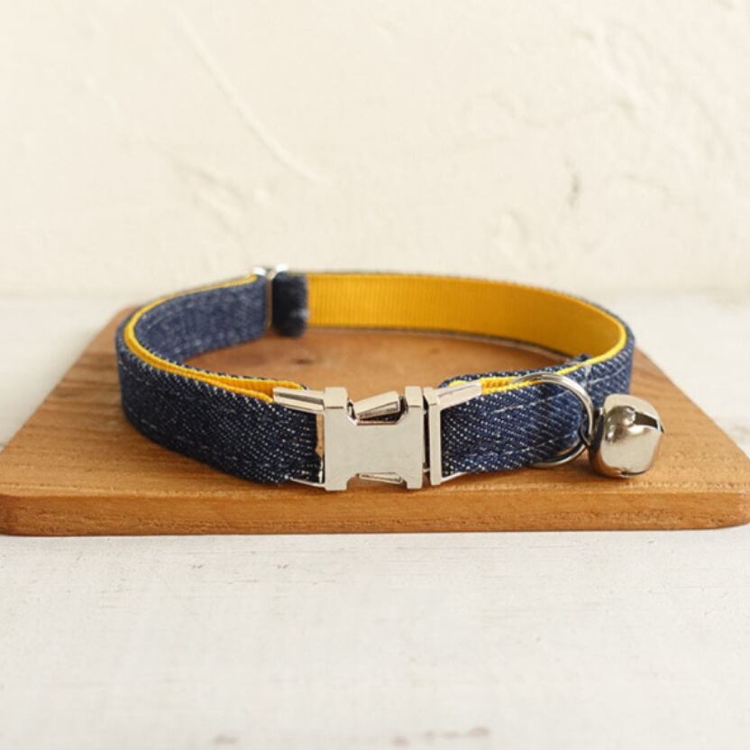 おなまえ猫首輪【インディゴブルー×イエロー】