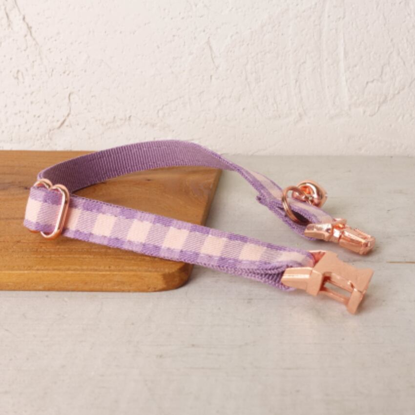 おなまえ猫首輪【ピンクパープル×ギンガムチェック】