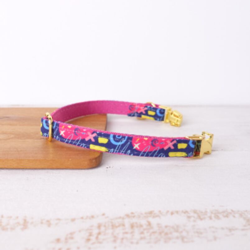 おなまえ猫首輪【ビビットピンクグラフィック】