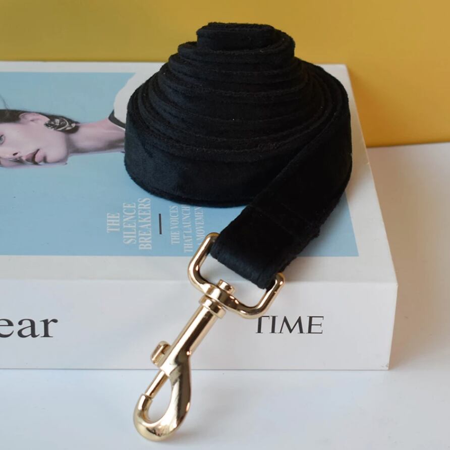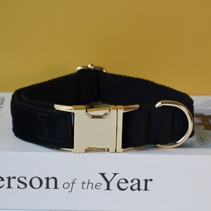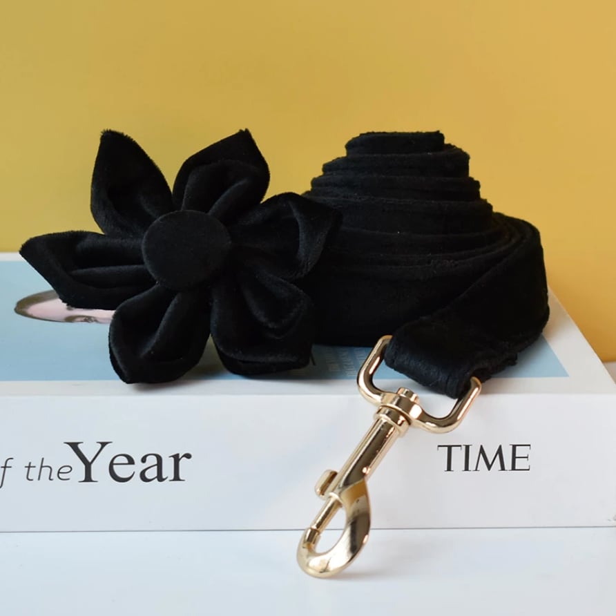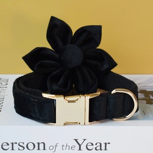 【お花シリーズ】ブラック×ベロア迷子札刻印サービス・犬用首輪&フラワー