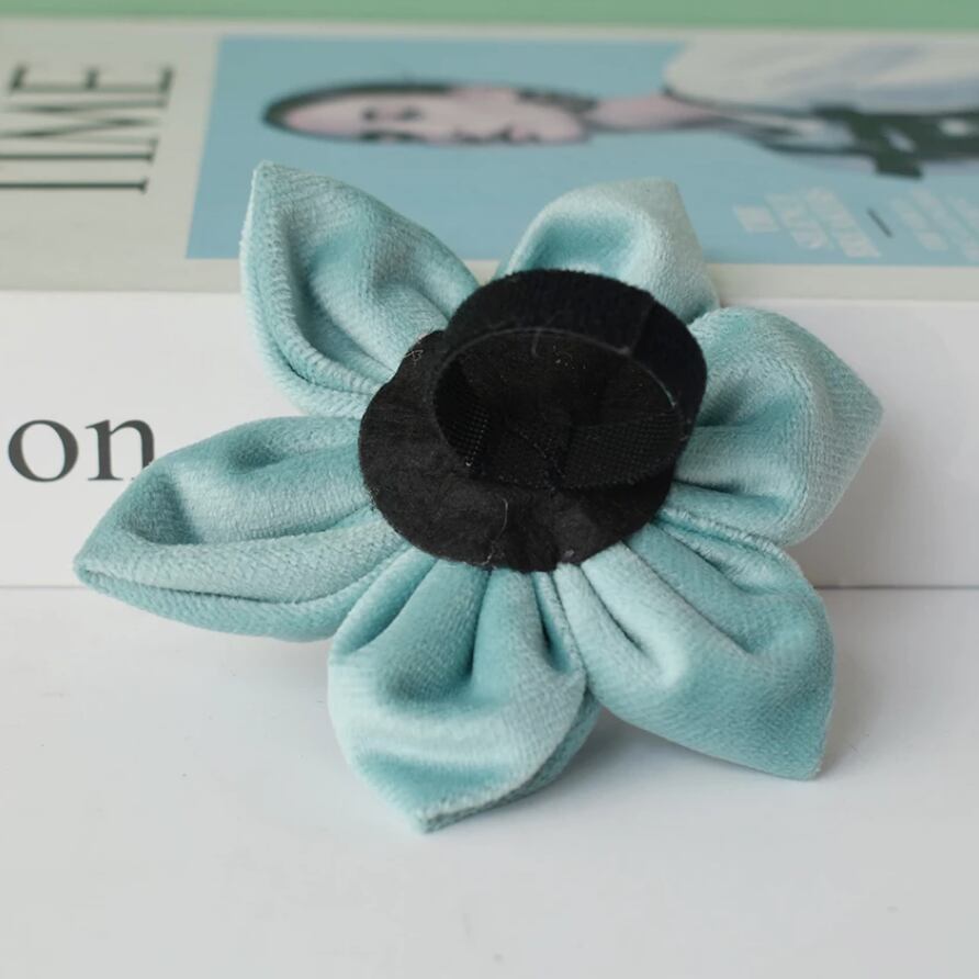 【お花シリーズ】ミントグリーン×ベロア迷子札刻印サービス・犬用首輪&フラワー