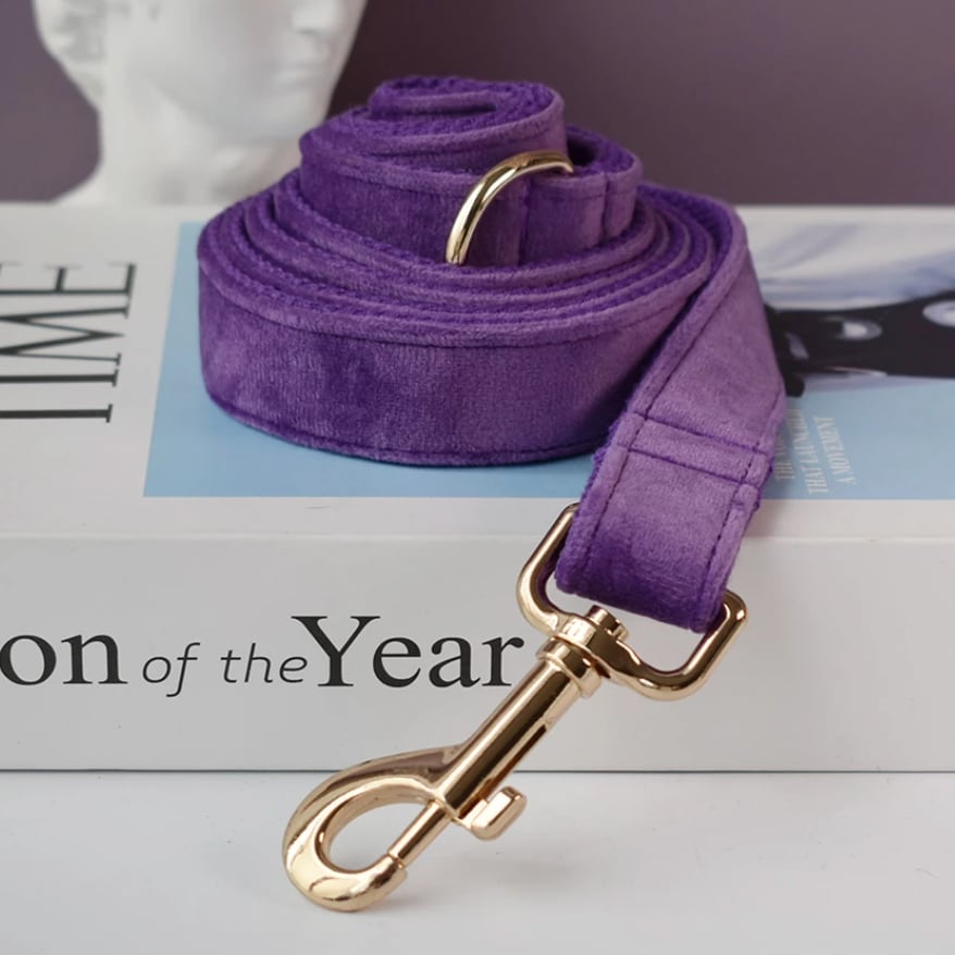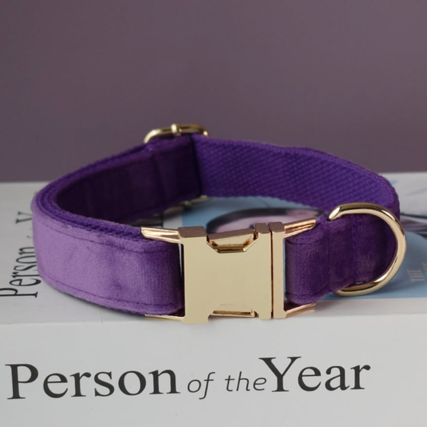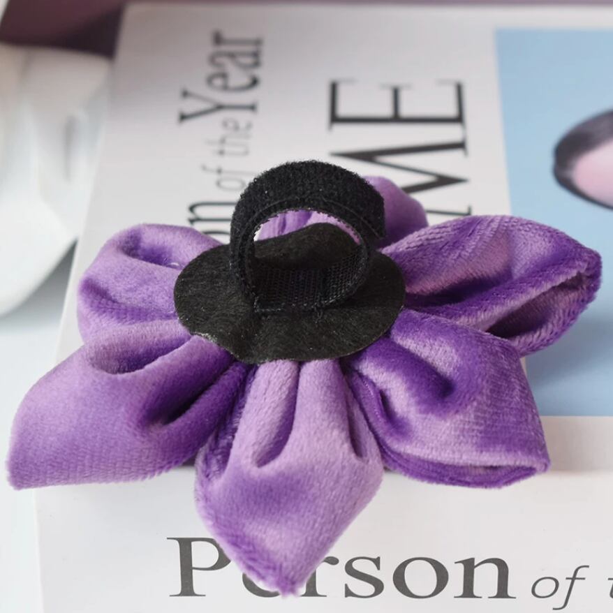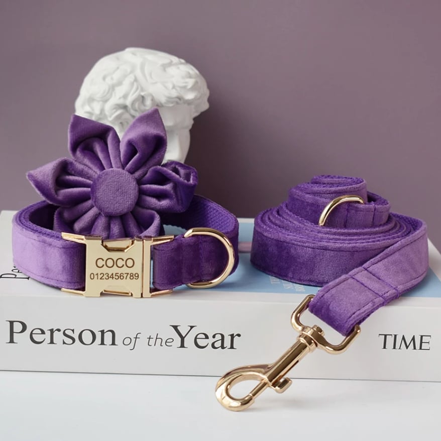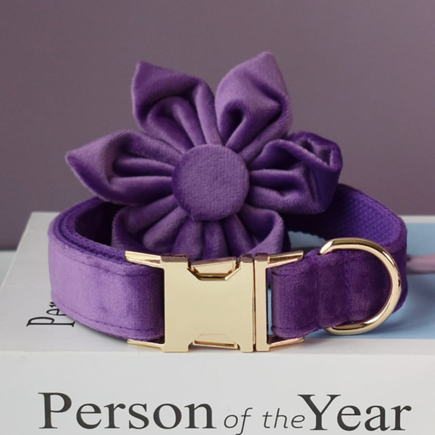 【お花シリーズ】パープル×ベロア迷子札刻印サービス・犬用首輪&フラワー