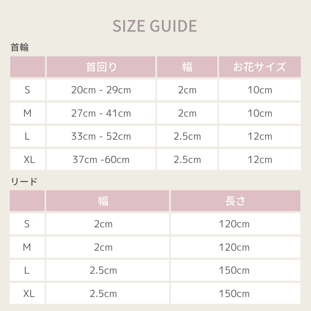 サイズ表を参考に、ペットの首回りを測定の上お選びください。